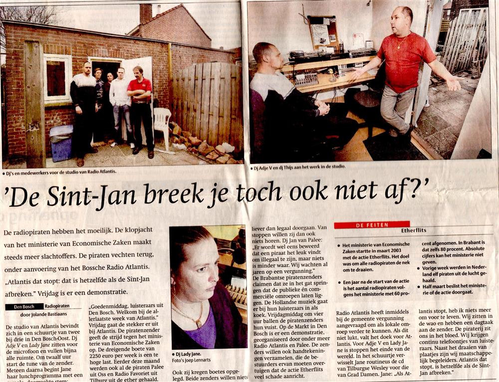 Den Bosch - 17 februari 2004 - De radiopiraten hebben het moeilijk. De klopjacht van het ministerie van Economische Zaken maakt steeds meer slachtoffers. De piraten vechten terug, onder aanvoering van het Bossche Radio Atlantis. "Atlantis dat stopt: dat is hetzelfde als de Sint-Jan afbreken." Vrijdag is er een demonstratie.