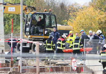 Het ongeluk gebeurde maandagochtend rond 08.30 uur in een diepe bouwput die deels is gevuld met water. Daar wordt een spoortunnel aangelegd.