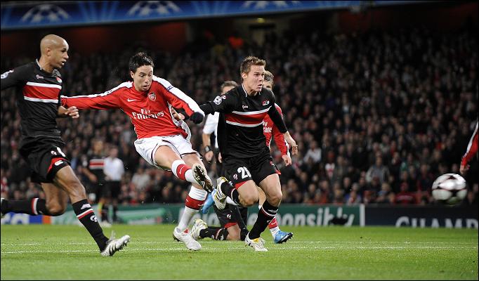 AZ startte voorzichtig aan het duel in Londen. Al snel bleek dat een spelopvatting die te prijzen viel. De eerste keer dat de Alkmaarders balverlies leden, counterde Arsenal op sublieme wijze de ploeg van Koeman uiteen. Het was uiteindelijk Robin van Persie die het doel van AZ onder vuur nam; zijn inzet zeilde maar net naast.