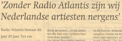 Maart 2007 - Radio Atlantis, meer dan 15 jaar bloed, zweet en tranen, om op een legale manier hun functie, taak en doelstelling voort te zetten. Dit doel is al sinds 1980 om voor zoveel mogelijk mensen het Nederlandstalige lied te verspreiden.