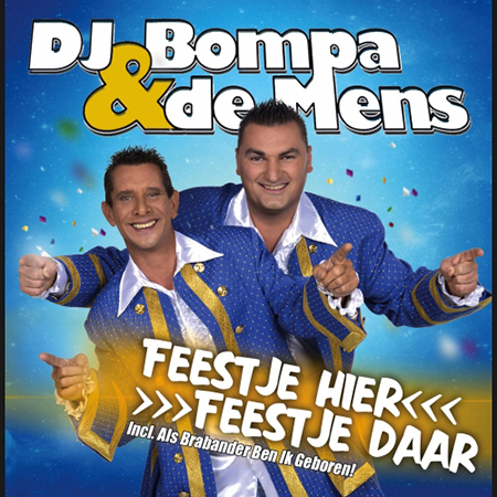 Eindelijk is het zover,de carnavalskraker 2014 van het gezelligste feestduo van Nederland Dj Bompa & de Mens is voorzien van een hilarische clip en staat online! Ook dit jaar zullen ze weer van de partij zijn bij vele Tv en Radio programma's en staan weer op menig grote en kleine buhne voor een feestend publiek in tal van feestzalen en cafe's in Nederland en Belgie met hun feestnummers..."Als Brabander ben ik geboren"- "Feestje hier,feestje daar"- "Nooit meer naar huis (toegaan)" en hun nieuwe feestkraker "Op m,n Vespa"!