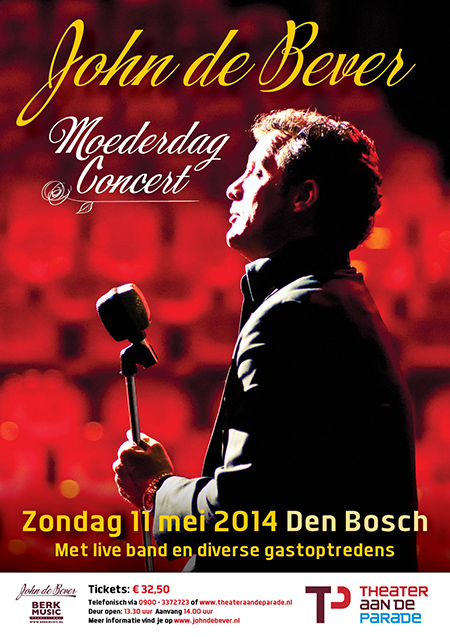 Op zondag 11 mei, geeft de Brabantse zanger 'John de Bever' een speciaal moederdag concert. De aanvang van het concert is om 14:00 uur en vindt plaats in het theater aan de parade in Den Bosch. Naast het optreden van 'John de Bever' met liveband vinden er ook diverse gastoptredens plaats.