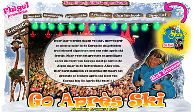 Go Après Ski zal op 20 maart 2010 de Ahoy in Rotterdam helemaal op zijn kop zetten. Voor meer informatie en filmpjes van de vorige edities, zie www.goapresski.nl.